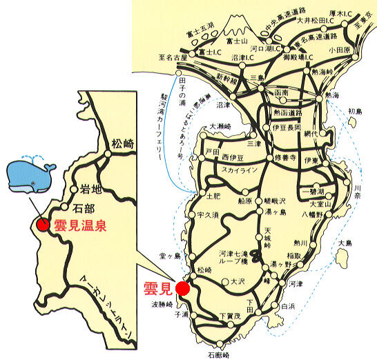・東京ー東名高速1時間30分ー沼津I・Cー修善寺・土肥経由2時間30分ー雲見